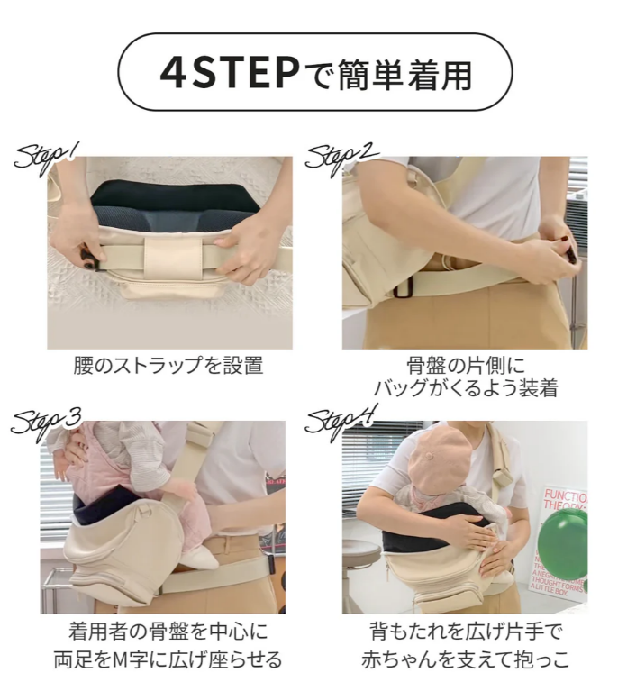 さらにちょっと抱っこしてあげたい時にすぐヒップシートにできるので、疲れてぐずる前に休憩させてあげられます。実際「娘を乗せたらすぐ寝てくれた(笑)」という声もあり、子どもにとっても居心地が良く安心できる抱っこを提供できています。