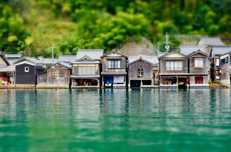 - 湾を取り囲むように連なる: 約5kmにわたる海岸線に沿って、200軒以上もの舟屋が密集して連なっています。この、まるで海に浮かんでいるかのような独特の景観は、訪れる人々を瞬く間に魅了します。