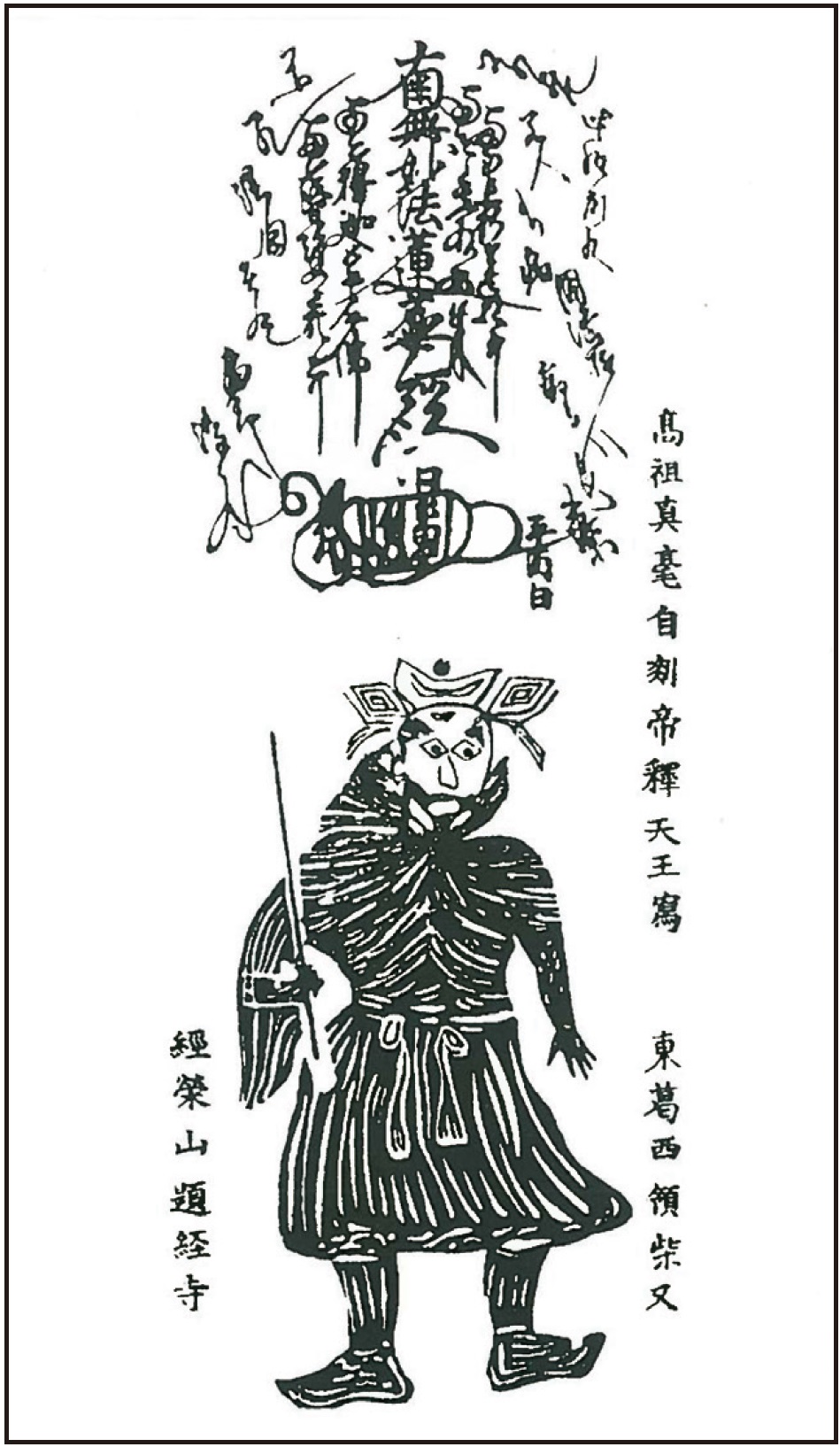 帝釈天王(たいしゃくてんのう)とは、仏法を守護する神の一尊で、梵天とともに仏教の二大護法善神とされます。元はインド神話の武勇神「インドラ」が仏教に取り入れられたもので、雷を司る神とされています。三十三天(?利天)の主であり、四天王を部下に従えて世界を守護しています。( 画像は https://www.city.katsushika.lg.jp/history/history/2-3-3-132.html より引用)